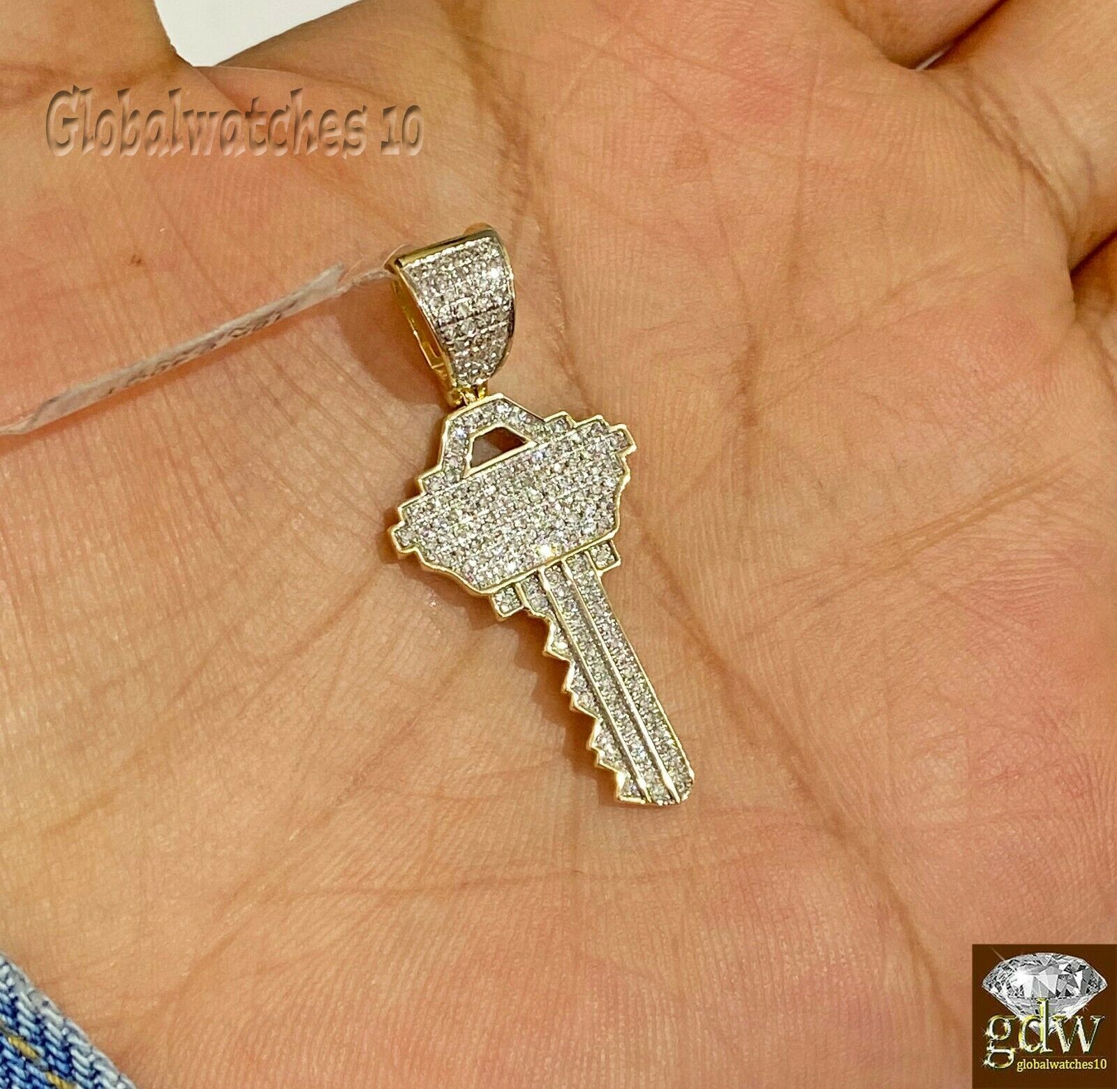 Real 10k Yellow Gold and Diamond Custom-Design key Charm/Pendant with Real (0.35 - 0.40) CT Diamonds with Miami Cuban Chain in Various Lengths. The length of the Charm is 1.5 Inches Long approx for Men/Women.The Length of the Chain is 20, 22, 24, 26 Inches Long and 3mm Width. Please feel free to contact us if you have any queries regarding the item!