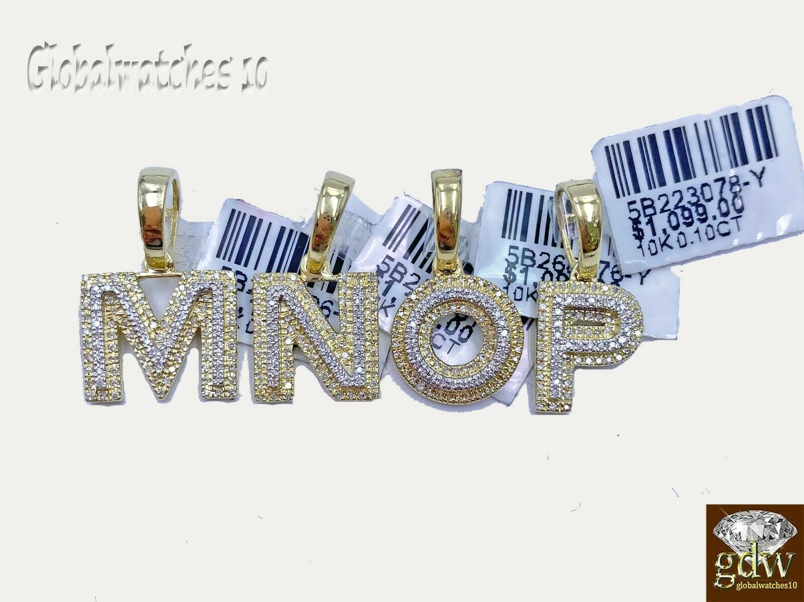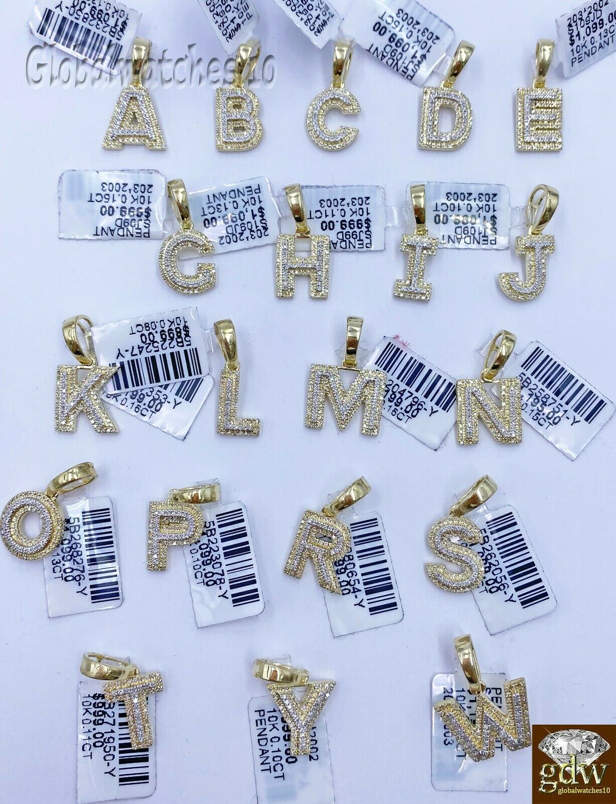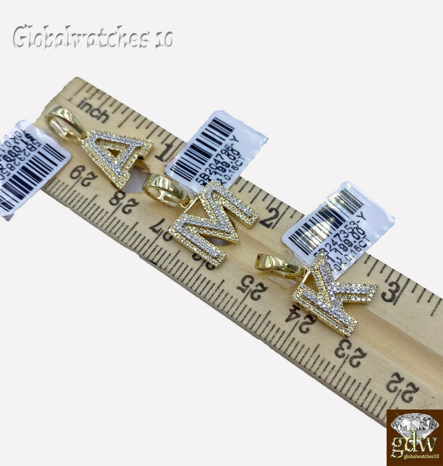 10k Real Yellow Gold Diamond Alphabet A-Z Initial Charm Pendent Men Women