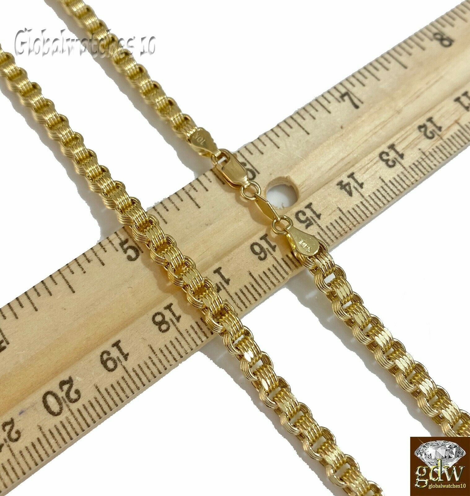 10K Pure Yellow Gold Byzantine Chain in Various Lengths of 20, 22, 24, 26 Inch. The Width of the Chain is 4 mm approx. .The Chain is made With Detailed Diamond Cut And Very Good Finishing. Please feel free to contact us if you have any queries regarding the item!