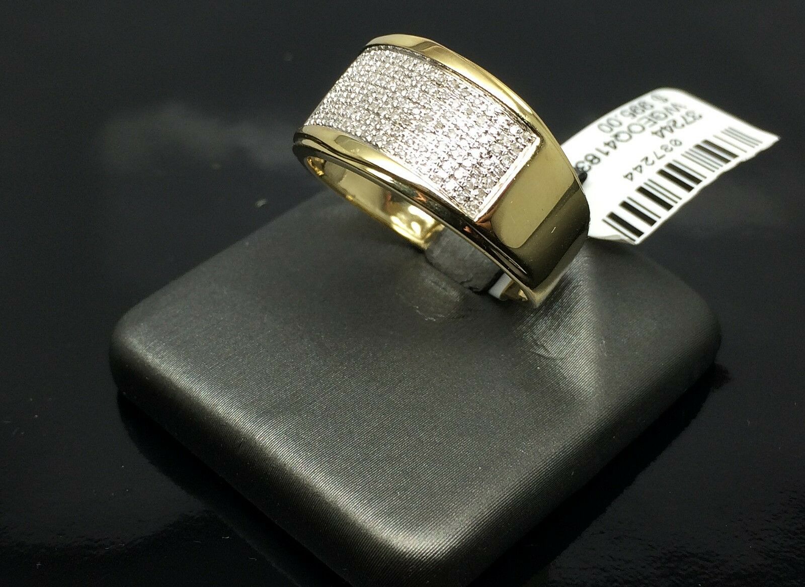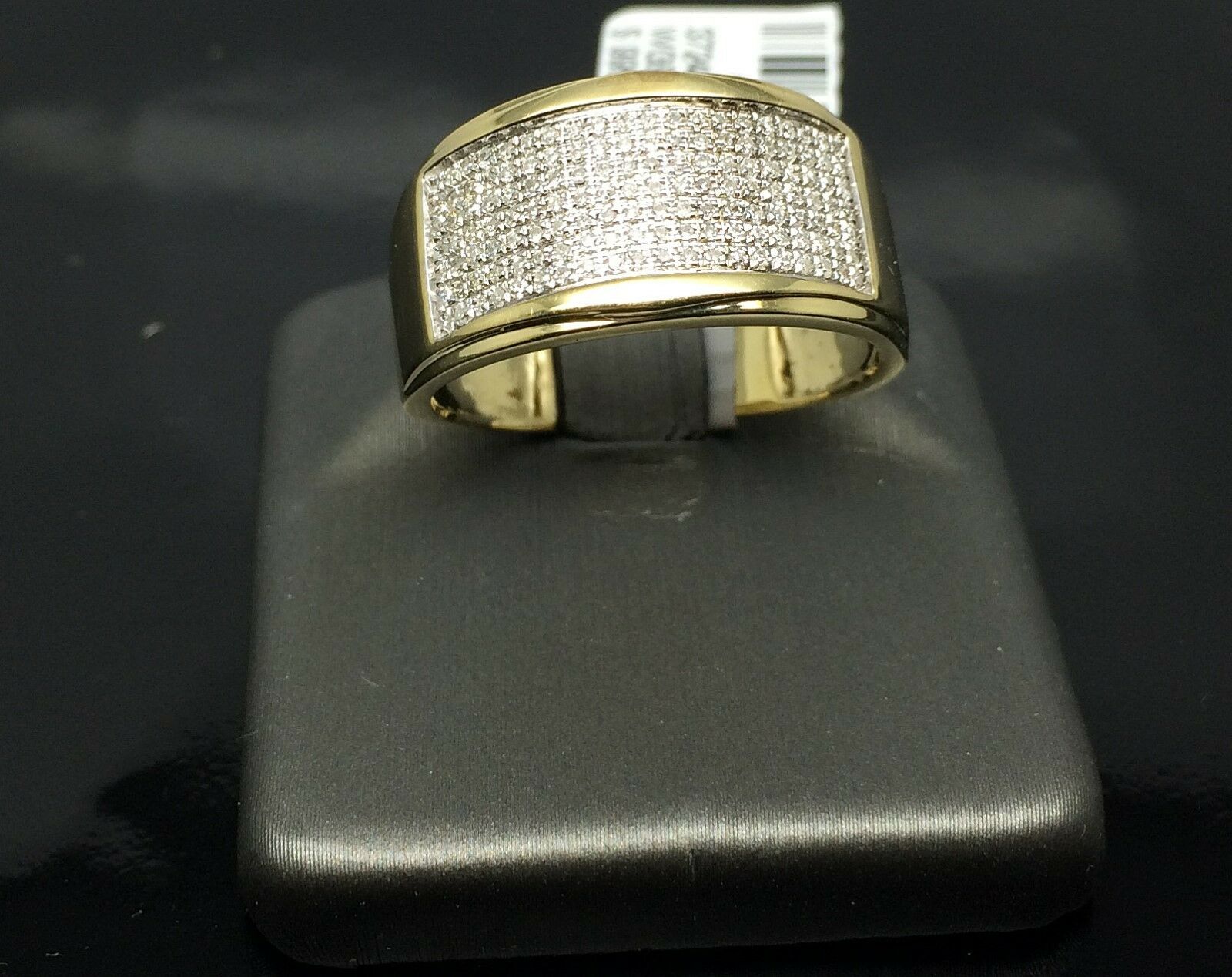 Mens 10K Yellow Gold Band Ring Wedding Engagement Size 10 Natural Diamond