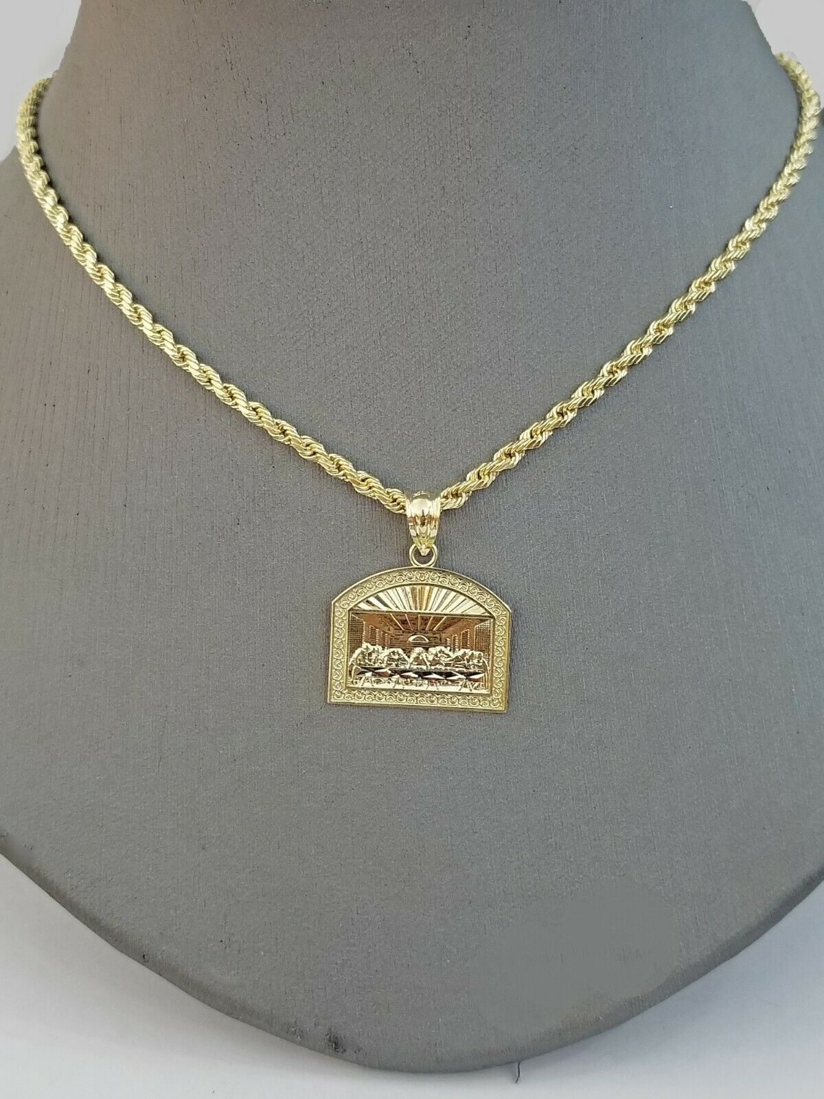 Real 10k Gold Last supper Charm Rope 2.5mm Chain Pendant 18 20 22 24 26 28 Inch